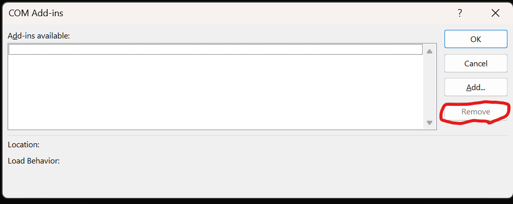 Steps to remove COM Add-Ins