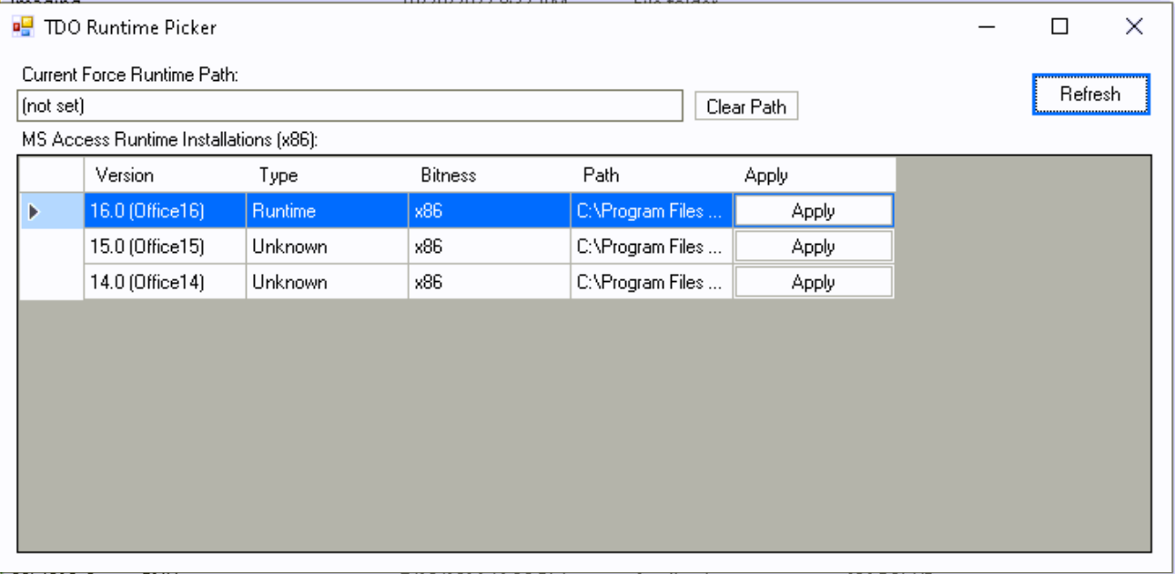 TDO Runtime Picker was developed to replace the various ForceRuntime registry files. TDO Runtime Picker will detect all versions of Runtime currently installed.