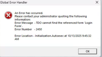 Issue: Cannot open TDO and error presents reading "Date:() error 3075"