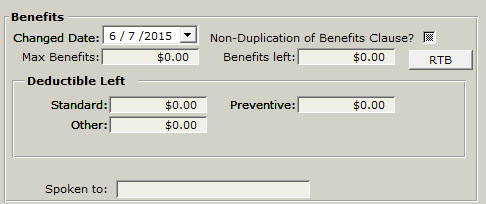 The right side of the form allows you to enter benefit information. This information is optional but necessary if you plan on using the insurance estimating feature of the program.