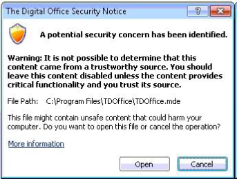 Troubleshooting - Security Notice opening TDO