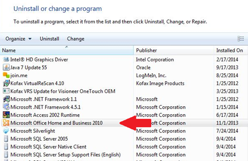 - After this has been completed, find the version of the Microsoft Office suite installed on the computer. Looking at the image below, the 2010 Office Suite is installed
