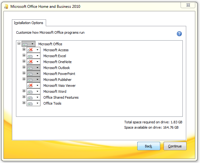 Note: Microsoft Office 2013 does not by default, allow you to change what programs are installed. To download a custom installer, please have your IT professional check the Microsoft website: http://technet.microsoft.com/en-us/library/ee460874(v=office.15).aspx
