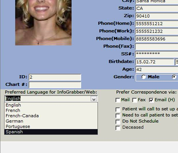 Note: The Infograbber can display in several languages, which can be selected in the patient’s record in TDO before logging into the Infograbber. See the Image below.
