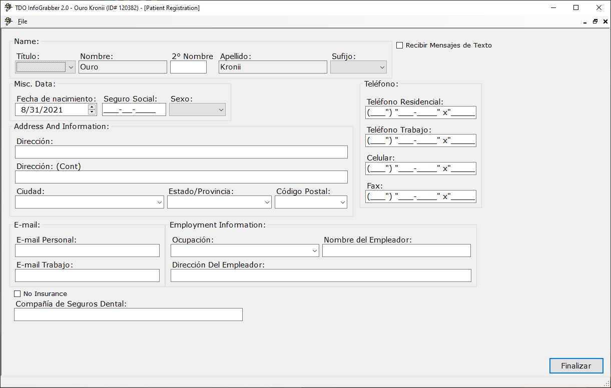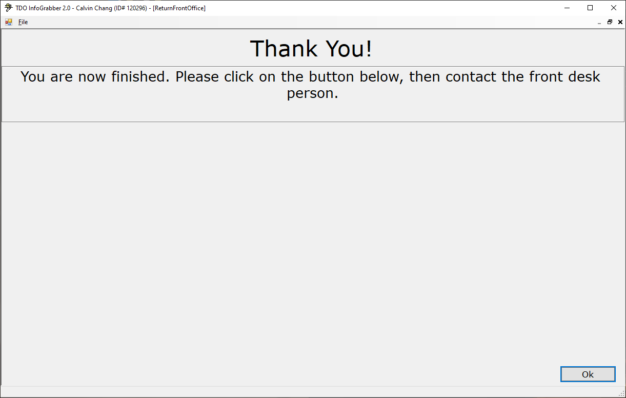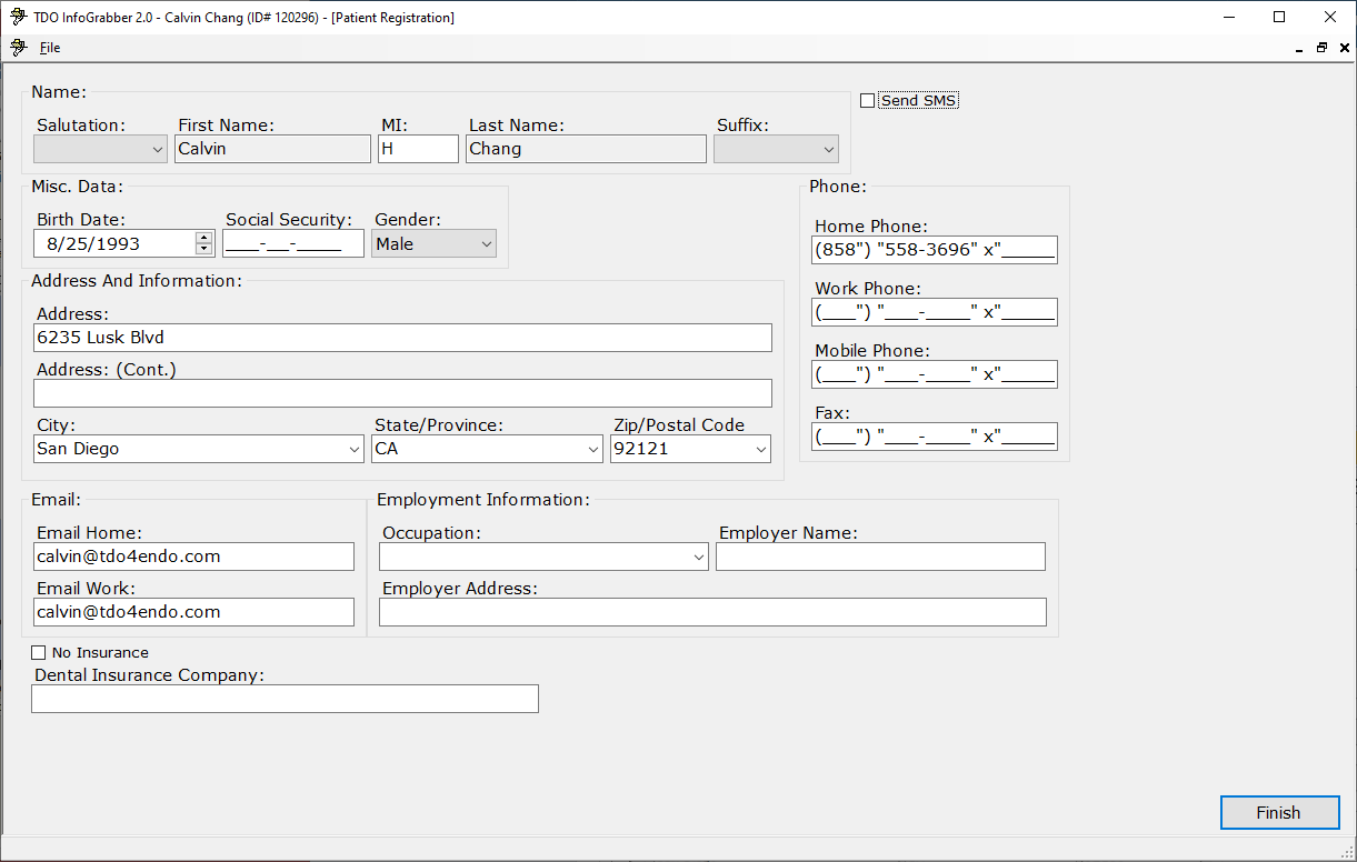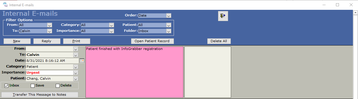 TDO sends an Internal Email alerting the office that the patient has completed their Infograbber registration: