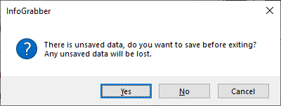 When you close Infograbber, you will see this message, but unless your wireless connection is down, or a firewall is on, the data will automatically save into TDO, so just click Yes:
