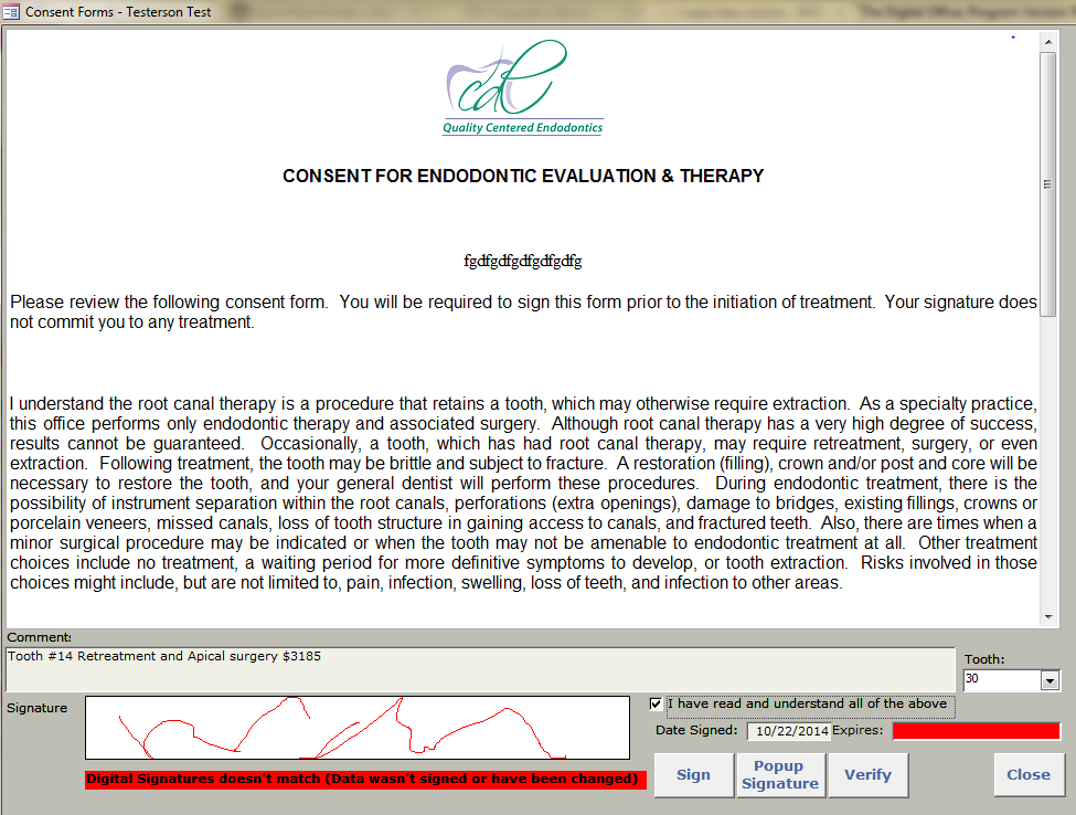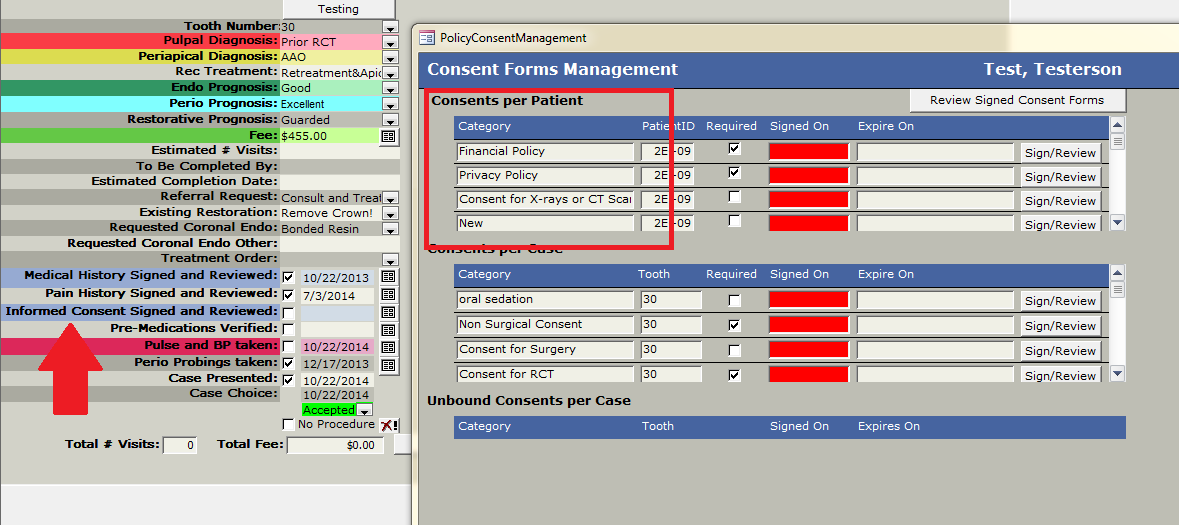 You can add as many paperless consent forms as you wish. Click on Informed Consent Signed and Reviewed, and a list of consents show up: