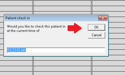 This will bring up a time stamp with the current time. Clicking OK will check in your patient and start the waiting time.