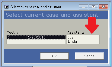 Choose the correct tooth, and select the name of the assistant who will be treating the patient: