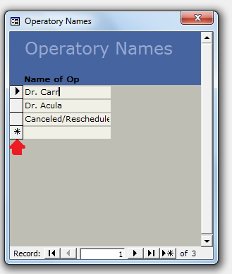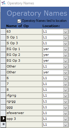 To add a new Operatory Name, start typing in the Name of Op column in the last row (the last row will always be empty to allow you to add another Operatory Name).