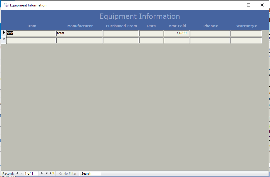 There is a place in the program where you can keep information on the equipment in your office.