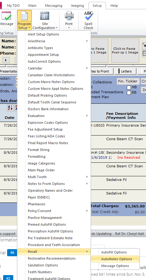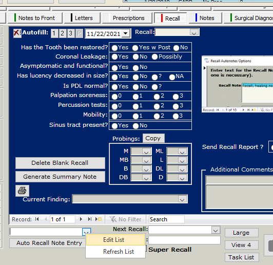 TDO allows you to quickly enter a summary of your recall exam on the patient’s recall page by using an autonote.