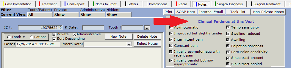 When you are entering a note for the patient’s visit, simply click the findings that apply. The items you check will show as part of the patient note automatically.