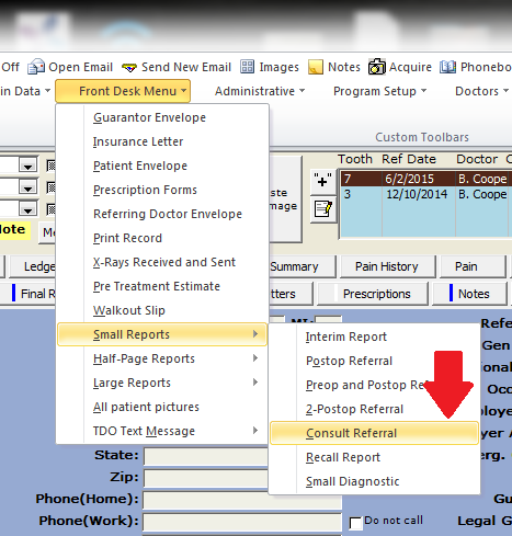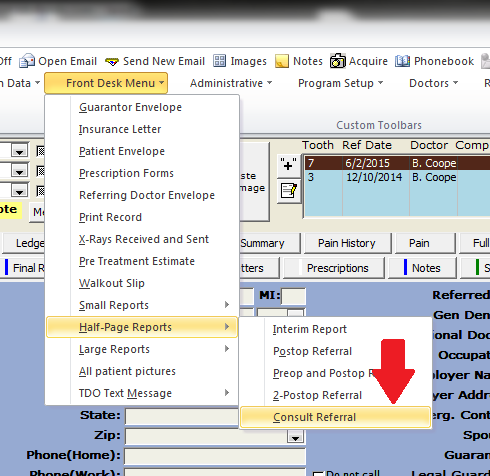 Normally a ‘Consult Referral’ report is sent to the referring doctor after a consultation if treatment is not going to be performed on a tooth.