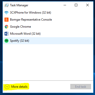 - For Windows 8 and newer machines, click on the More Details arrow on the Task Manager.