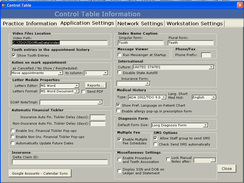 Click on the Application Settings tab. Notice the button on the bottom of the screen that says “Google Accounts – Calendar Sync”.