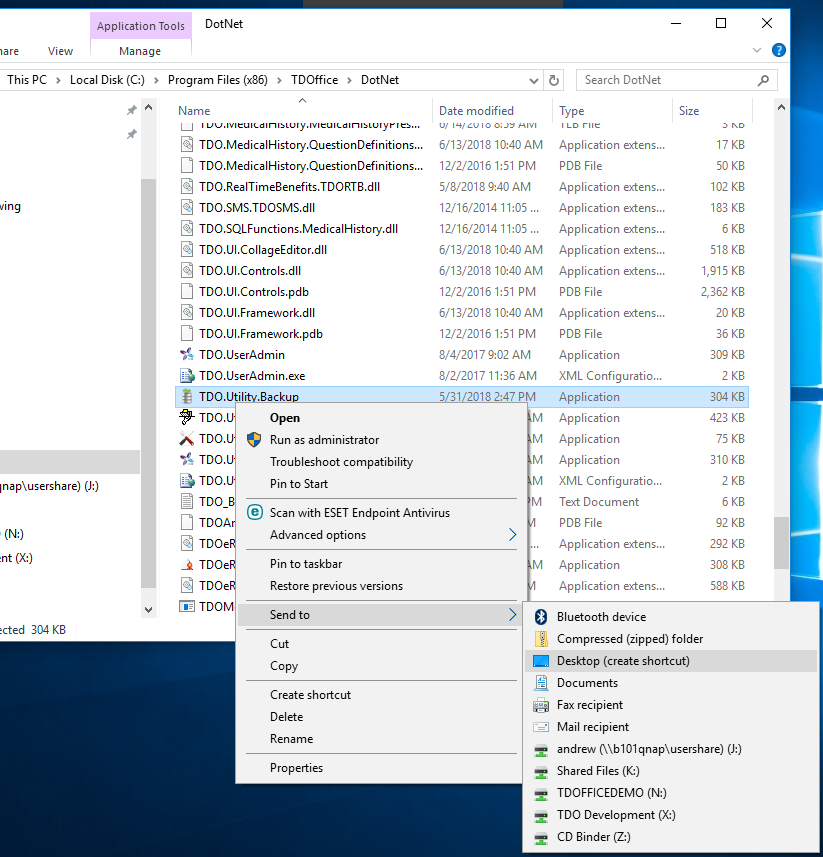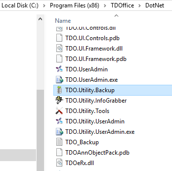 Right-click on the TDO.Utility.Backup (Backup.exe in Version 11) file and Send to the Desktop as a shortcut.