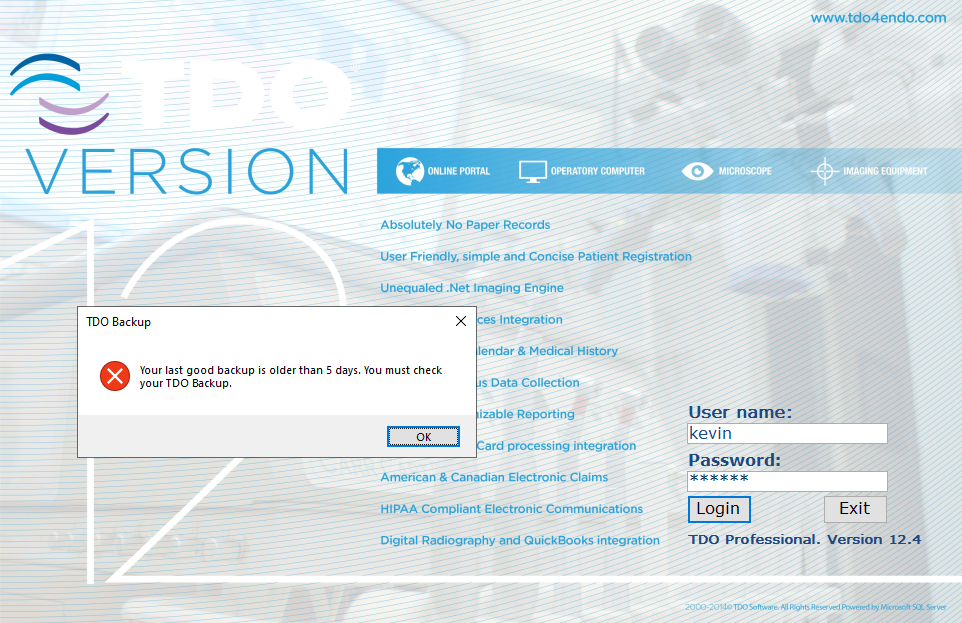 TDO Cloud Backup: 7 days worth of TDO Server Data backups and all X-rays. Comes with TDO Cloud Services. This should not be considered your primary backup but a secondary option. A local backup is required.