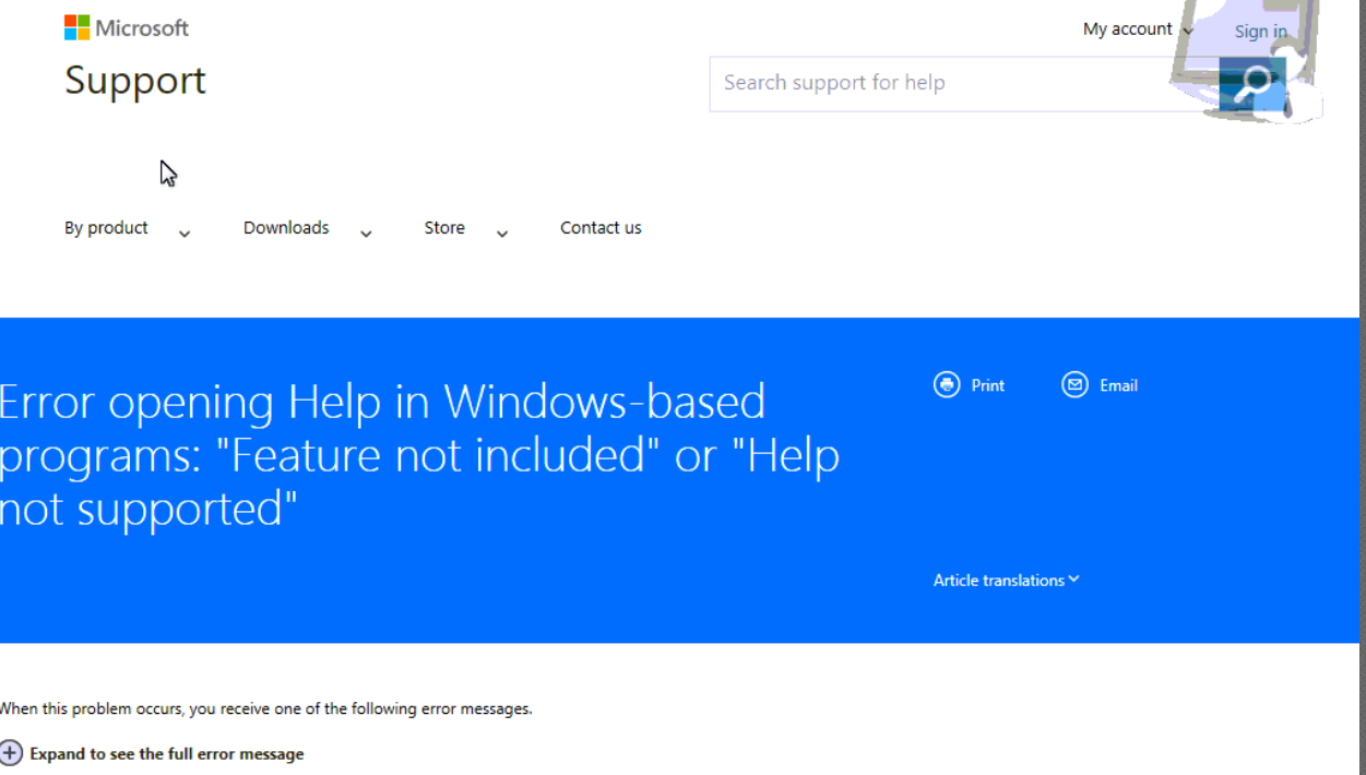- You will see the page: Error Opening Help in Windows-based programs: “Feature not included” or “ Help not supported”