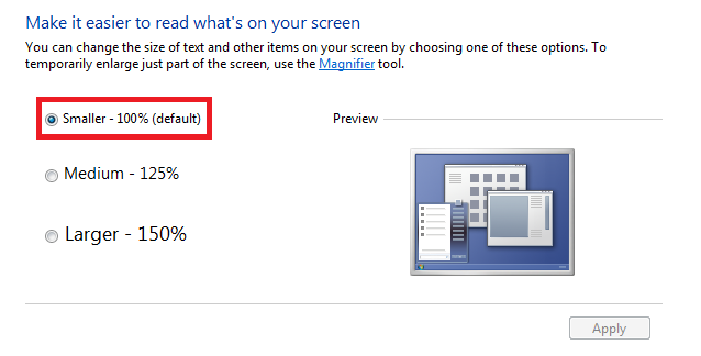 4. After you have selected Smaller, click Apply.
