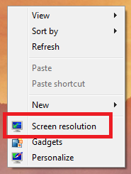 1. To check your screen resolution, right click on your desktop and choose Screen Resolution.