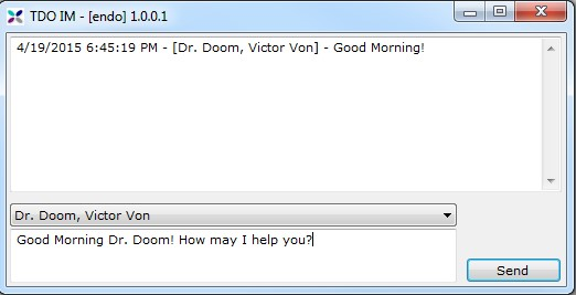 Once the Referring Doctor sends the message, the TDO “Chat” window will pop up on the screen with the Referring Doctor’s message.