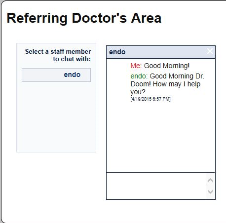 After clicking on the CHAT tab, the Referring Doctor will be able to see who is available to chat.