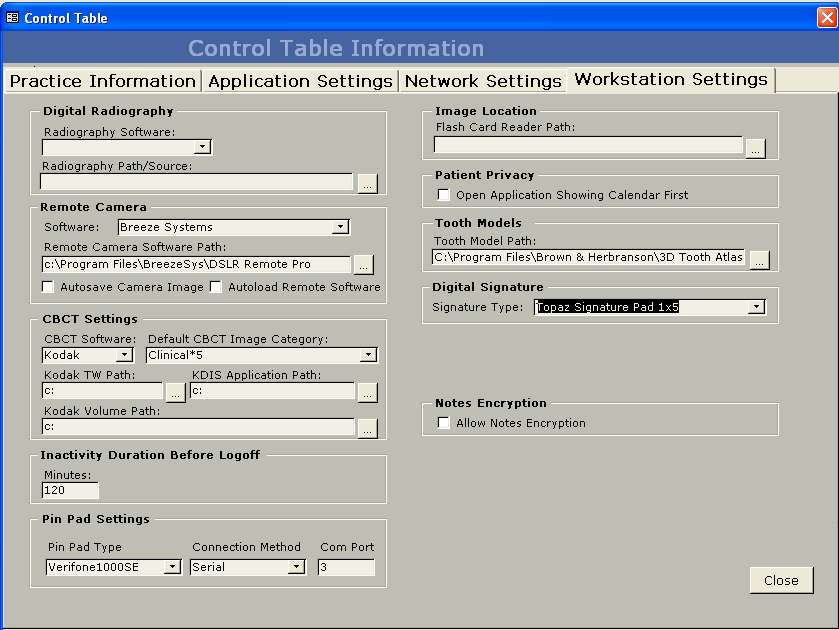 - Go to Control Table and click on the Workstation Settings tab. Select the “Topaz Signature Pad 1x5” in the Signature Type drop down box. Figure 1.