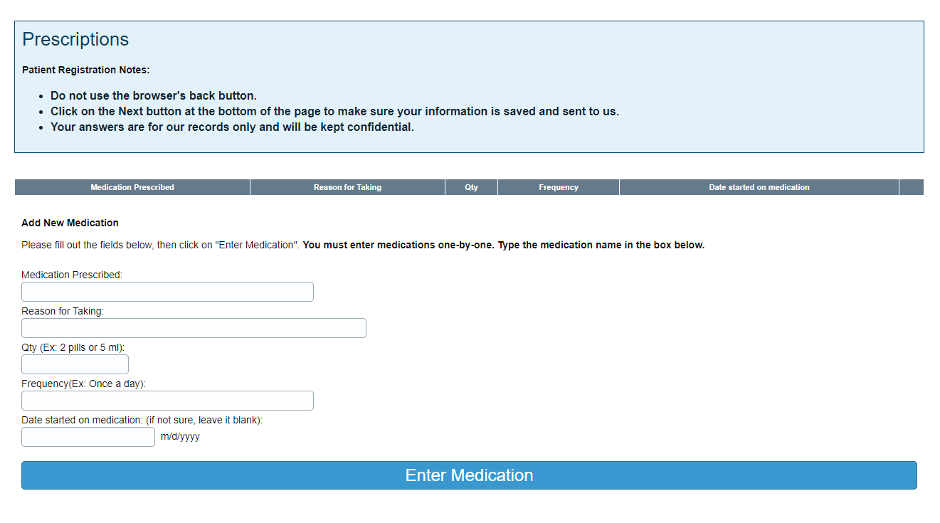 Medical History: The patient is then prompted to fill out the medical history you have selected.