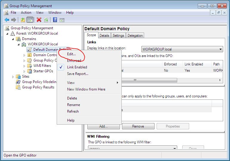 Go to Forest > Domains > DomainName > Default Domain Policy