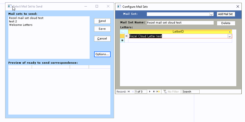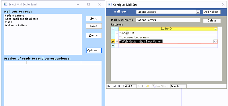 Mail Sets are now complete and instead of click and sending multiple letters individually one click will generate several letters at once to be sent individually with a few less clicks.