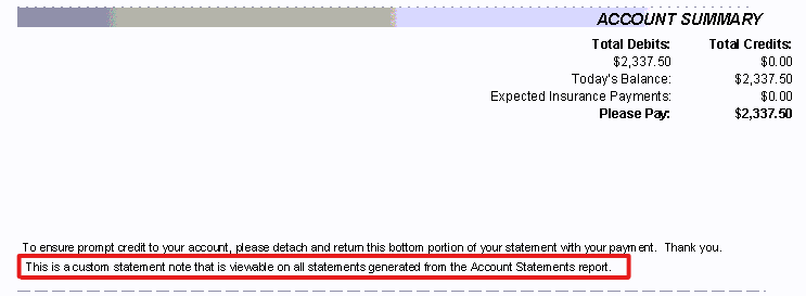 Optional: if you would like to add a custom note to appear on ALL statements pulled, write it beneath the Enter Statement Notes: field. Your custom note will appear just above the payment stub at the bottom of the page.