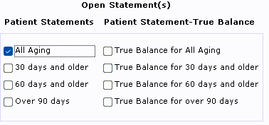 Select what type of patient statement you would like to view under the Open Statement(s) section. Only one (1) checkbox can be marked.
