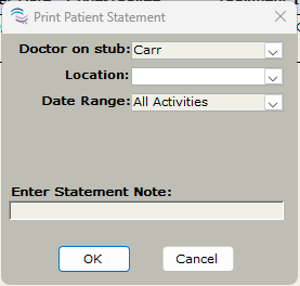 Click on Print Statement - a pop-up window called Print Patient Statement will open