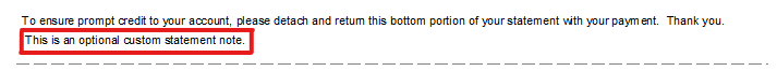 | In the image below, outlined in red is where the custom statement note entered will appear. |
