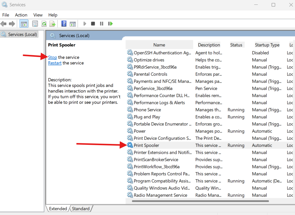 Testing – Turn off the print spooler. Windows search>Services