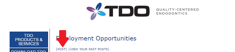 Being part of the TDO Community allows you to post job opportunities to a large amount of highly trained doctors and staff. To take advantage of this, follow the detailed steps listed below.