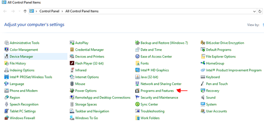 1. Go to Control Panel and select Programs and Features.