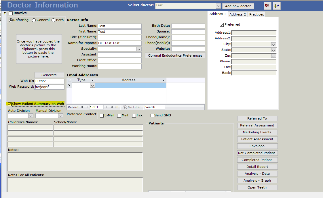 In the referring Doctor Information tab in TDO, check the box to "Show Patient Summary on Web"