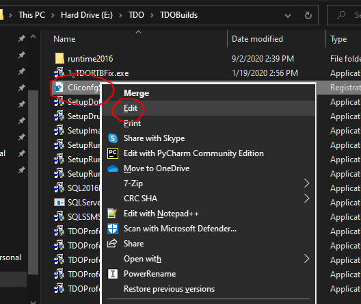 - You can now open your TDOBuilds folder, and run the CliconfgSetter.reg file to set the cliconfg instead of navigating the windows each time.