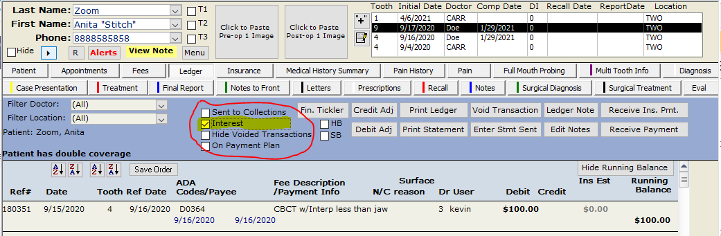 Note: Since charging interest could potentially charge a large group of patients with an aging balance, if there are patients that you do not wish to charge interest, you can go to their ledger, and uncheck the “Interest” box.