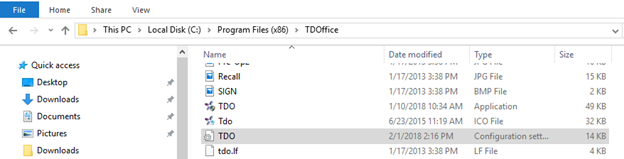 Go to “C:\Program Files \TDOffice” (32-bit) or “C:\Program Files (x86)\TDOffice” (64-bit) and double-click on "TDO.ini"
