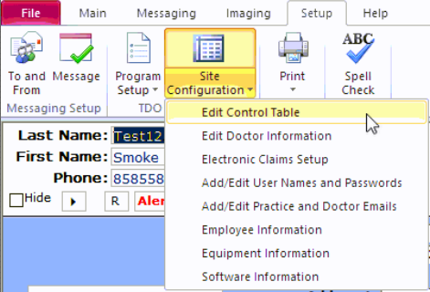 - Go to Setup>Site Configuration and select Edit Control Table.