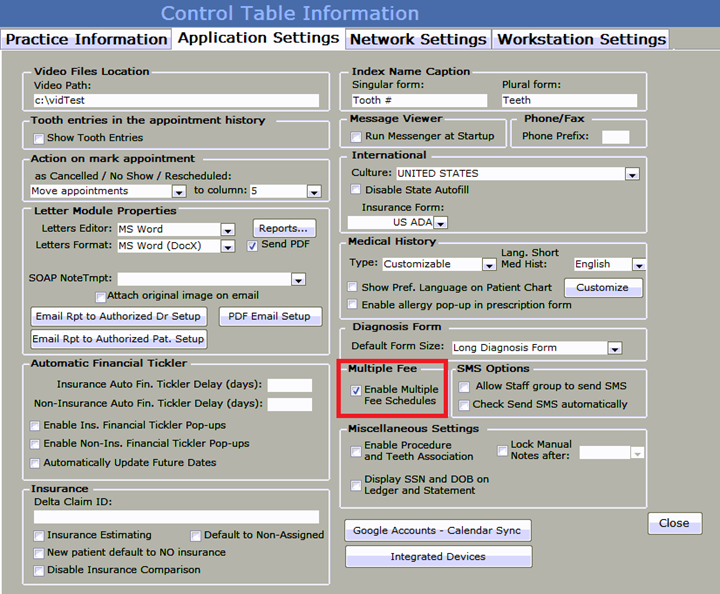 - On the Application Settings tab, check the box next to Enable Multiple Fee Schedules.