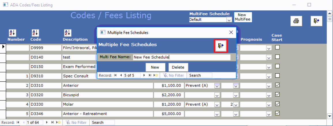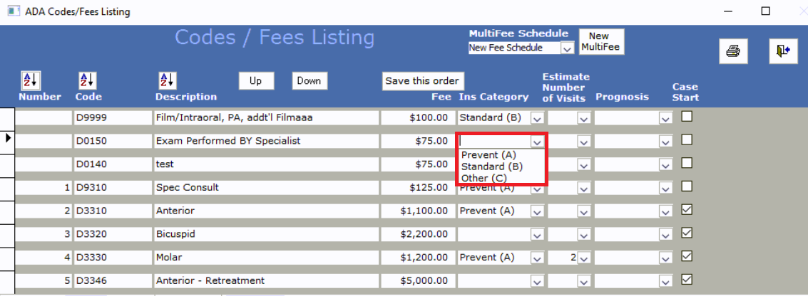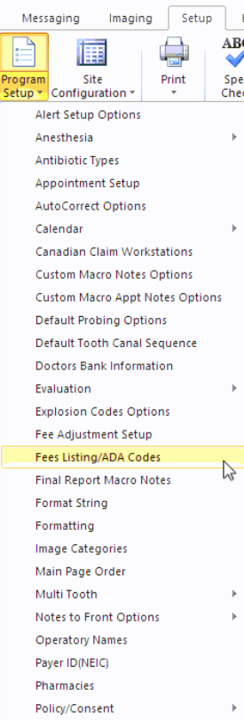 - Go to Setup and select Program Setup, Select the Fees listing/ADA codes option.