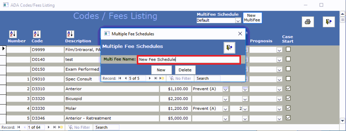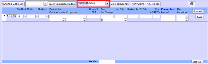 - Note: if a Multi Fee Schedule is linked to an Insurance company, the name of the Multi Fee will be showing in Multi Fee dropdown. If not using Multi Fee Schedules, it will show the “Default” multi fee.