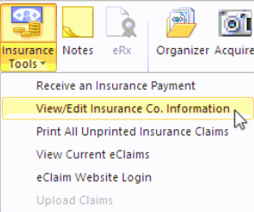 - Go to Insurance Tools drop down along the upper bar then click on View/Edit Insurance Co. Information.