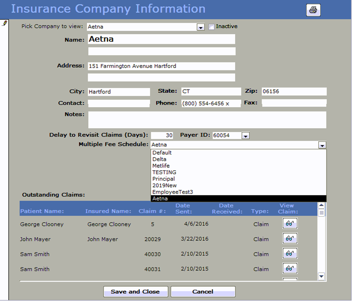 After setting up your multi fee schedules you can attach them to an insurance in the system so that it automatically pulls the correct fee schedule corresponding to the insurance chosen under the insurance tab.
