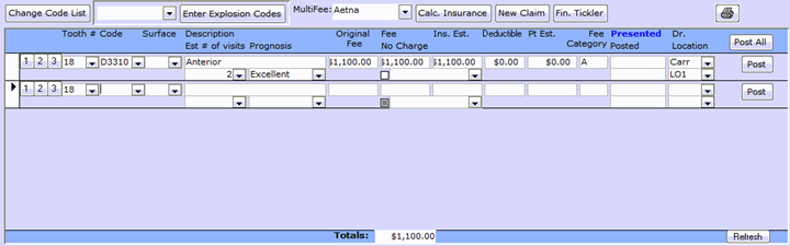 Before continuing, it is very important to determine how you want the fee amount to show in the Ledger and in the Insurance Claims.