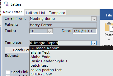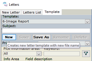 - This is a Fixed Letter Template, included by default in TDO, and cannot be edited or deleted; if you do not see this template in the drop-down list on the ‘New Letter’ tab, you may need to enable it from the ‘Templates’ tab. To enable this template, click the ‘Templates’ tab in the Letters Module, and select ‘6-Image Report’ from the drop-down list. If the ‘Don’t use Template’ box is checked, uncheck it, then return to the ‘New Letter’ tab and select ‘6-Image Report’ from the list.